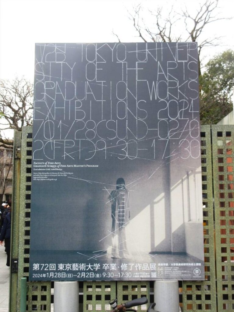 Tokyo University of the Arts holds the “Graduation and Master’s Works Exhibition” annually from late January to February, lasting about a week. It displays the graduation works of both undergraduate and graduate students. The exhibition uses not only the University Art Museum but also classrooms across the campus. For graduate (master’s) students, each has a designated room—likely their studio—so visitors see the works in the very spaces where students created them.