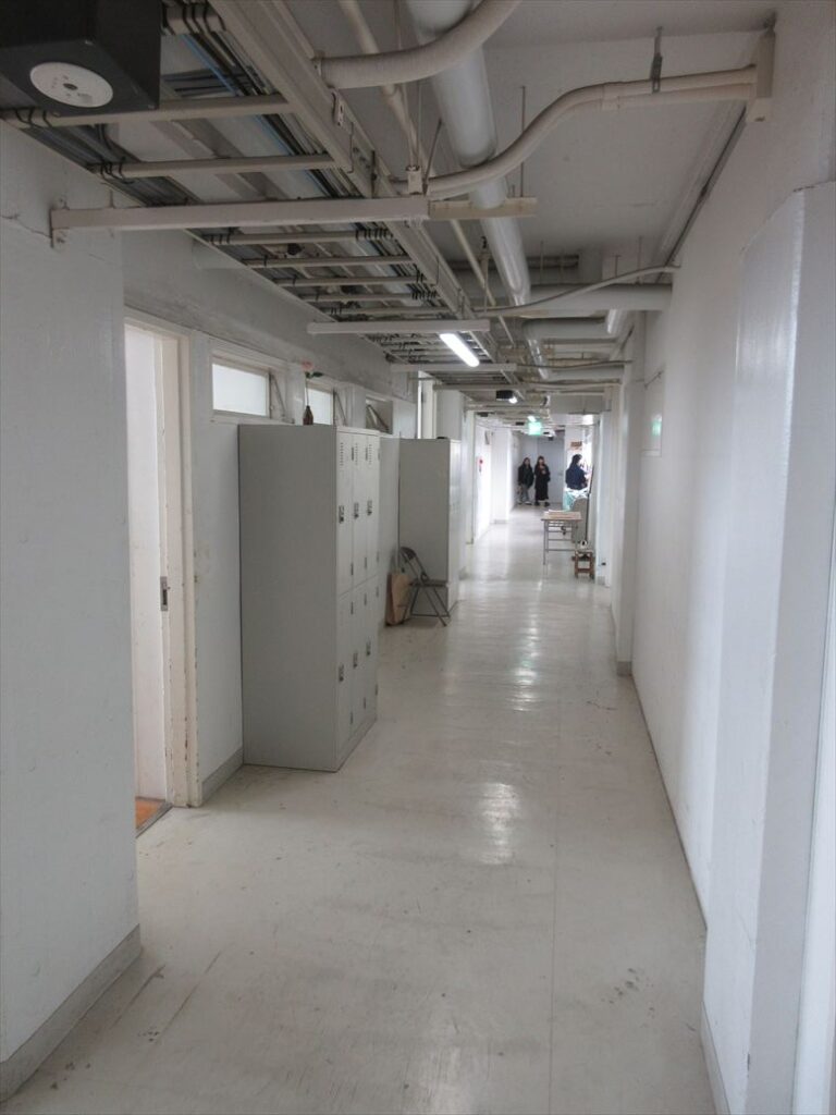 Each room is a typical school classroom, but it accommodates large works such as big canvases or sculptures. The rooms measure roughly 15 m by 8 m, with ceilings about 6 m high. Each room also has a sink. One can easily imagine students spending long hours fully immersed in their creative work in these spaces.